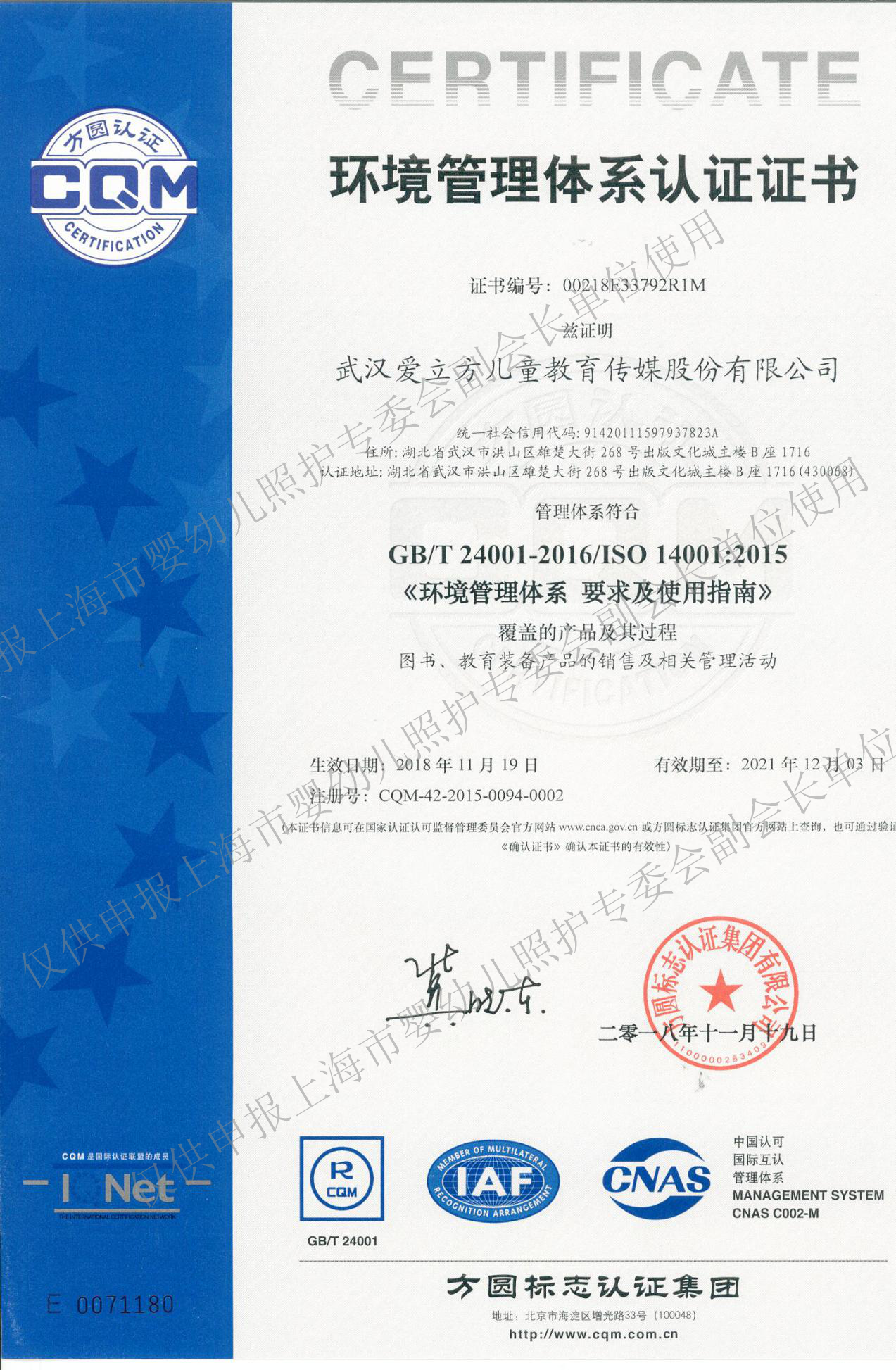 YZW-A003武汉爱立方儿童教育传媒股份有限公司